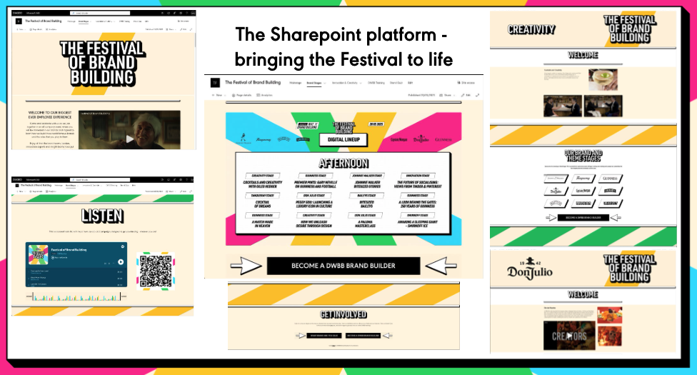 A digital platform & hub built on Microsoft Sharepoint, with pages per Diageo brand, promoting the most bold examples of brand building – including commercials, webinars, podcasts and playlists. The hub also included pages per brand, collating brand stories and highlights for specific audiences.